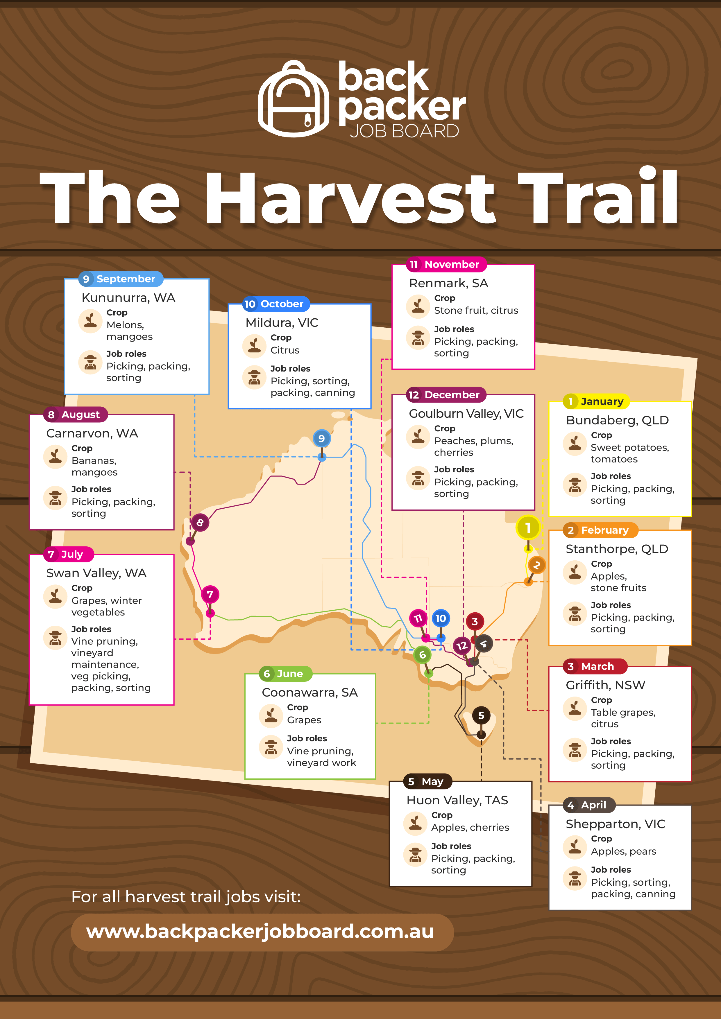 In fact, there’s a dedicated path that you can follow to secure year-round Australian harvest work: The Harvest Trail.